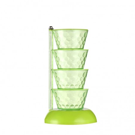مع لونها الأخضر الزاهي وتصميمها الأنيق، تتكامل علبة التوابل الدوارة الرأسية الشفافة تمامًا في جميع المطابخ بينما تقدم حلاً عمليًا وجماليًا للفوضى الطهو.
