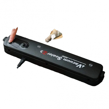 الهيكل الخارجي الأسود الأنيق لا يضيف لمسة عصرية لمطبخك فحسب، بل يضمن أيضًا المتانة بفضل بنائه من البلاستيك القوي. توجد لوحة التحكم البديهية بشكل مريح على السطح العلوي، مع أزرار تتيح لك التنقل بسهولة بين عمليات التفريغ والتغليف.