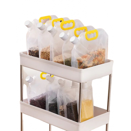 مصنوعة من البلاستيك المتين، تقف هذه الحقائب بشكل مستقيم ومصممة لتعظيم المساحة في مخزنك أو خزانة المطبخ. سعتها المعتدلة تجعلها مناسبة للشراء بالجملة من العدس والفاصوليا والأرز أو المعكرونة - مثالية لمن يحبون الطهي بمكونات صحية.