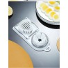 العنصر المميز في قاطعة البيض متعددة الوظائف يكمن في قسم القطع الدائري الذي يتميز بنمط نجمي. يسمح هذا التصميم الذكي بإنشاء أرباع متساوية مع ضمان سهولة التعامل بفضل المقبض المريح الصغير. تجعل تصميمها المدمج مثالية لأسطح المطبخ حيث المساحة محدودة.