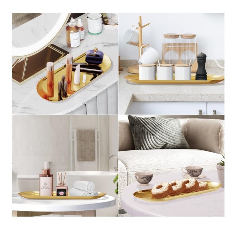 مصنوعة من الفولاذ المقاوم للصدأ، هذه الصينية ليست فقط متينة ولكنها أيضًا مقاومة للتآكل، مما يضمن أنها تحتفظ بلمعانها مع مرور الوقت. تخلق تشطيبها اللامع والعاكس تأثيرًا فاخرًا يجذب الأنظار، بينما تتكامل بسلاسة مع أنماط الديكور الداخلي المختلفة.