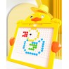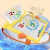 بتصميمها الجذاب، تتميز هذه اللوحة بوجود إطار ملون وزوايا مدورة، مما يضمن استخدامها بشكل آمن. سطح الرسم مزود بشبكة من النقاط المرتفعة التي تثبت الكريات الفولاذية المغناطيسية في مكانها، مما يسمح للأطفال بإنشاء أشكال وحروف وصور دون فوضى الأدوات التقليدية.