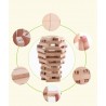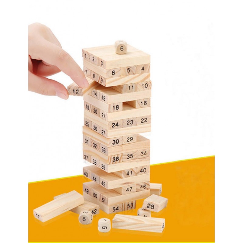لإضفاء الإثارة على جولاتك، تم تضمين ثلاثة نرد خشبية لتحديد أي كتلة يجب سحبها خلال الدور. الهدف بسيط: سحب كتلة دون إسقاط البرج! تشجع هذه اللعبة ليس فقط على التفكير الاستراتيجي، ولكنها أيضًا تطور التنسيق بين العين واليد والمهارات الحركية الدقيقة.