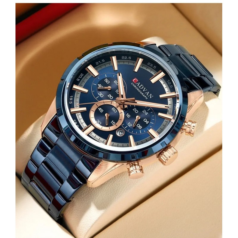 تتميز هذه الساعة بقدرات مقاومة للماء مناسبة للأنشطة اليومية—مثالية لتلك الرشات غير المتوقعة أثناء التمارين أو الخروج غير الرسمي. تأتي في علبة أنيقة تحمل علامة CADVAN، مما يجعلها خيار هدية ممتاز لأي مناسبة.