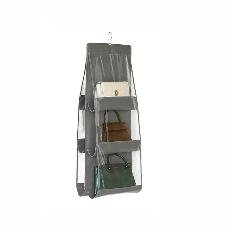 اكتشف حقيبة اليد ذات الوجهين للسيدات، وهي حل أنيق وعملي لتنظيم حقائبك. مع تصميمها ذو الوجهين، تعظم المساحة بينما توفر رؤية مثالية. مصنوعة من الجلد الصناعي الأسود مع جيوب شفافة، هذه الحقيبة مثالية للتخزين السهل والأنيق في خزانة ملابسك. متاحة باللون الأسود والرمادي.
