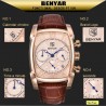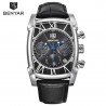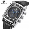 تأتي ساعة الرجال BENYAR الأصلية مزودة بسوار من الجلد الحقيقي الأسود الملمس الذي يكمل التصميم بشكل مثالي. يسمح نظام الإبزيم الكلاسيكي بتعديل مريح على المعاصم المختلفة.