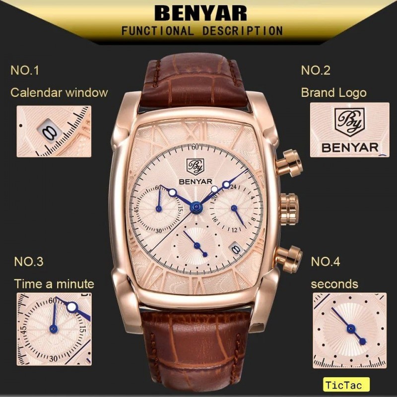 اكتشف ساعة الرجال BENYAR الأصلية، وهي إكسسوار لا غنى عنه للرجل العصري. بتصميمها المعاصر والمتطور، تتميز هذه الساعة بعلبتها المصنوعة من الفولاذ المقاوم للصدأ المصقول، مما يوفر كل من المتانة والأناقة. شكلها المستطيل الممتد يضيف لمسة فريدة تجذب الأنظار.