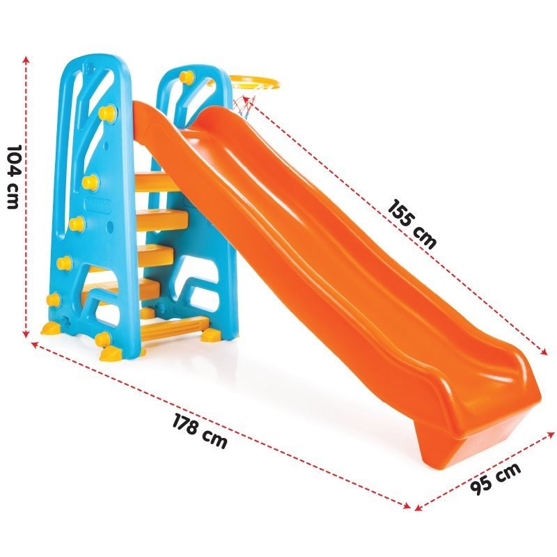 لعبة معقدة صغيرة تتضمن شريحة وحلقة كرة سلة. مصنوع من البلاستيك عالي الجودة والصديق للبيئة بأعلى معايير السلامة، ليتحمل التغيرات المناخية الخارجية.