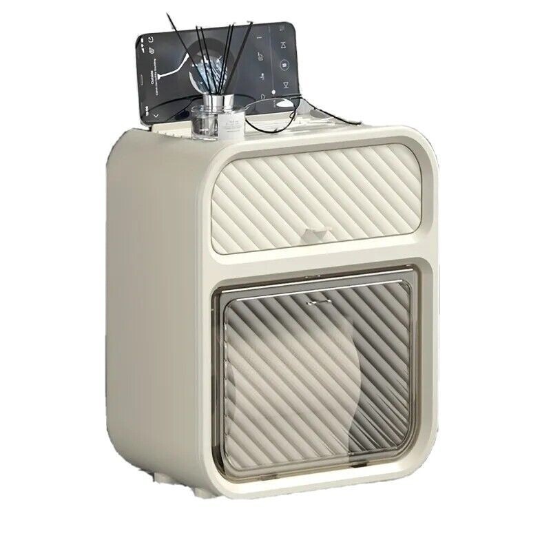 يمكنك وضع ورق لف مجوف أو ورق لف صلب أو ورق سحب. الوسط عبارة عن منظم للمرحاض، مناسب لتخزين المناديل المبللة وأكياس القمامة ومنتجات النظافة النسائية.