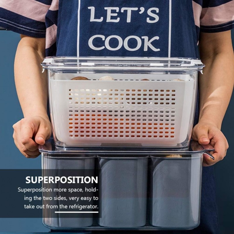 ثلاجة صندوق التخزين منظمة بشكل جيد وجميلة وواضحة، يمكنك رؤية طعامك بوضوح.