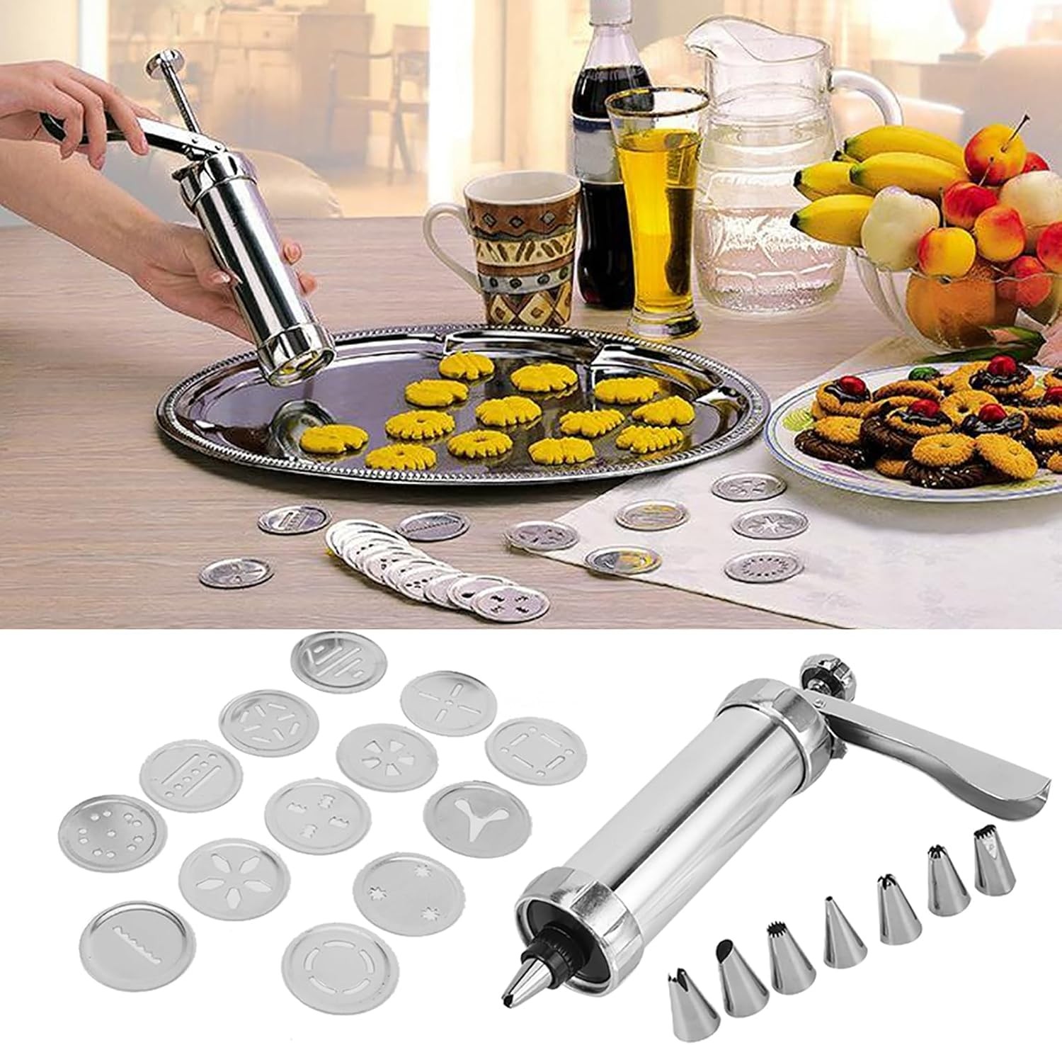 اكتشف مجموعة آلة ضغط البسكويت الخاصة بنا، مجموعة قوالب ضغط البسكويت من سبائك الألمنيوم، آلة البسكويت، حافة. مصنوعة من الألمنيوم المتين، تتضمن هذه المجموعة فوهات قابلة للتبديل وأقراص زخرفية لإنشاء بسكويت بأشكال متنوعة. مثالية لعشاق الحلويات الذين يرغبون في صنع بسكويت لذيذ منزلي الصنع بسهولة.