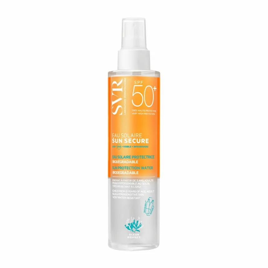 اختبر حماية شمسية متفوقة مع SVR Eau Solaire Sun Secure SPF 50+. يوفر هذا الماء الواقي من الشمس القابل للتحلل حماية عالية ضد أشعة UVA وUVB والأشعة المرئية والأشعة تحت الحمراء. مثالي للبشرة الحساسة ومناسب لكل من الأطفال والبالغين، تضمن تركيبته المقاومة للماء تغطية دائمة خلال الأنشطة الخارجية. اختر واقي شمس يحترم المحيط بينما يحافظ على سلامة بشرتك.