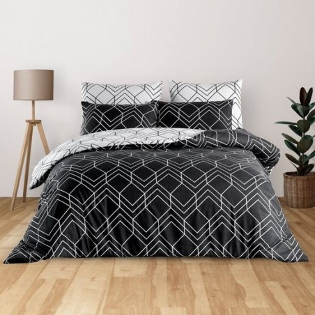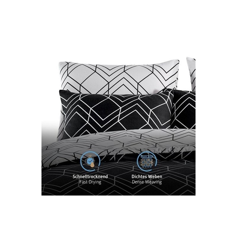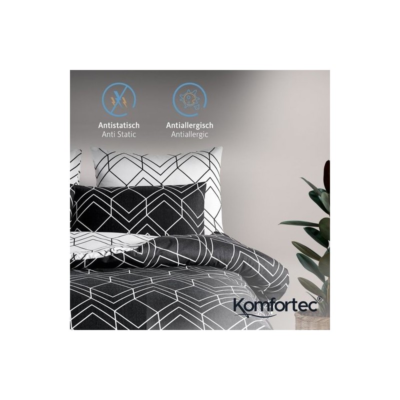 حوّل غرفة نومك إلى ملاذ من الأناقة والراحة مع طقم بياضات Komfortec. يعرض هذا الطقم الرائع تصميمًا هندسيًا عصريًا، يتميز بألوان الأسود والأبيض الجذابة التي تخلق تباينًا بصريًا مذهلاً. تضيف الأنماط المتداخلة على شكل حرف V عنصرًا من الرقي، مما يجعله الخيار المثالي لأولئك الذين يقدرون الجماليات المعاصرة.