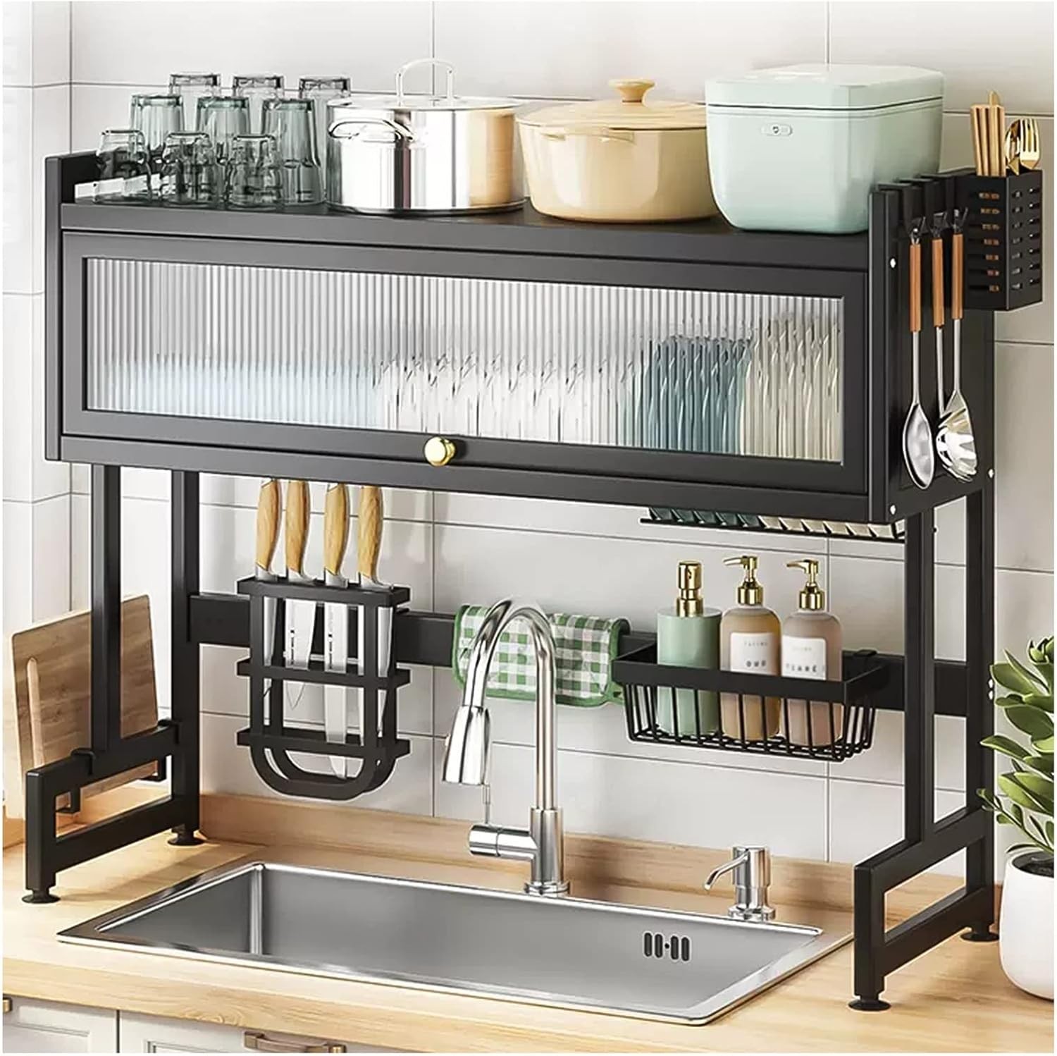 مصنوع بإطار معدني قوي، يضمن هذا الرف تجفيف متانة طويلة الأمد بينما يضيف لمسة عصرية لأي ديكور مطبخ مع تشطيبه الأسود غير اللامع. تجمع المواد، بما في ذلك لوح تقطيع من الخشب الطبيعي، بين الوظائف والجاذبية الجمالية. مع أبعاد تناسب أحجام المطابخ المختلفة، يصل ارتفاعه الإجمالي إلى 80 سم ويقدم عرضًا داخليًا يتراوح بين 62 سم و92 سم.