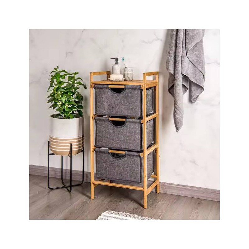 وحدة تخزين من الخيزران مع 3 صناديق قماش - تصميم عصري وصديق للبيئة