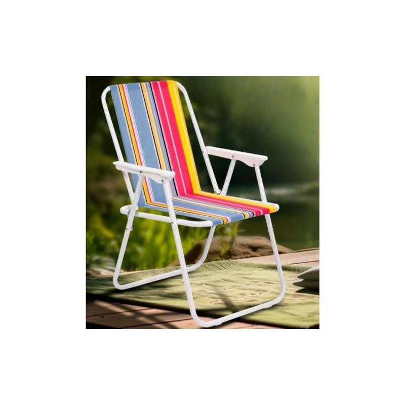 اكتشف كرسي الشاطئ القابل للطي المثالي، المصمم للراحة وسهولة الحمل. يتميز بإطار معدني متين مع قماش مخطط ملون زاهي، هذا الكرسي الخفيف الوزن مثالي للمغامرات في الهواء الطلق. يضمن آلية الطي المريحة سهولة النقل والتخزين، مما يجعله إضافة أساسية لمجموعة أثاثك الخارجي للاسترخاء على الشاطئ أو في الفناء.
