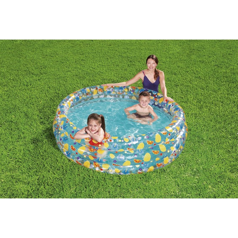 حوّل حديقة منزلك إلى جنة صيفية مع حمام السباحة القابل للنفخ الرائع لدينا. مصمم بشكل مثالي للأطفال، يتميز هذا المسبح النابض بالحياة بهيكل شفاف مزين بأنماط ملونة من الفواكه والزهور والمخلوقات البحرية المرحة. هذه التصاميم الجذابة تلتف حول الحافة العلوية، مما يخلق جوًا جذابًا يثير الفرح والخيال.