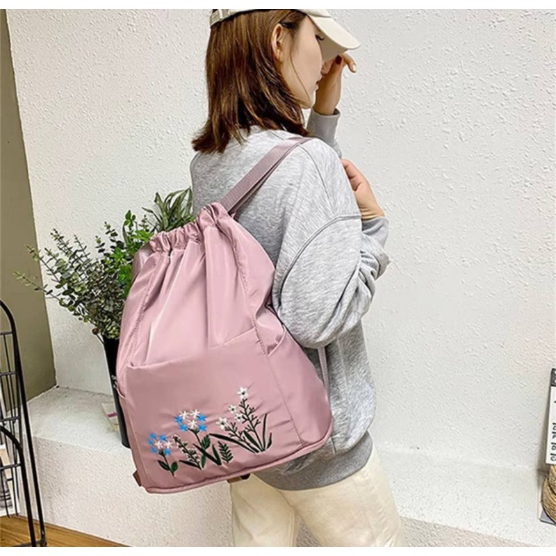 اكتشف حقيبتنا الأنيقة ذات الحبل السحب، التي تتميز بسطح خارجي من قماش وردي ناعم وتصميم تطريز زهور أنيق. بأبعاد 43 سم × 33 سم × 17 سم، هذه الحقيبة خفيفة الوزن مثالية للخروج غير الرسمي أو المدرسة. تجعل أحزمتها القابلة للتعديل وجيبها الخارجي المريح منها عملية وعصرية، مثالية لأولئك الذين يقدرون الأناقة والعملية.