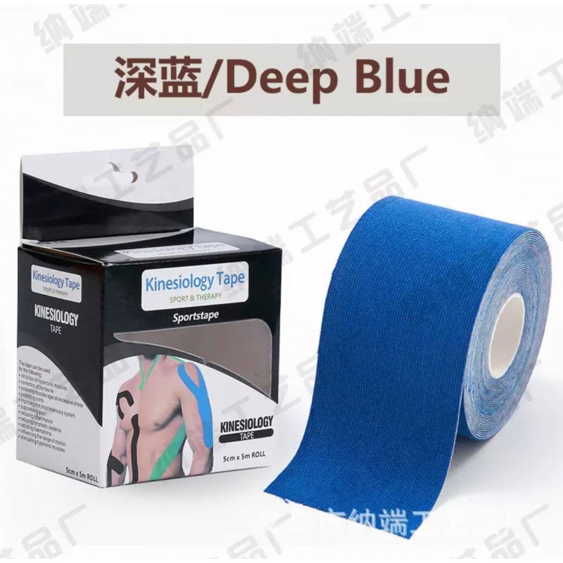 معبأ في علبة أنيقة سوداء مع لمسات زرقاء وبيضاء، يبرز شريط الكينيسيولوجيا لدينا على أي رف. تعرض الجهة الأمامية بشكل بارز الملصق "شريط الكينيسيولوجيا"، بينما توضح صورة لجذع إنسان مناطق التطبيق المحتملة لتحقيق أقصى فعالية. يبرز التسمية ثنائية اللغة بالإنجليزية والصينية جاذبيته العالمية، مما يضمن أن المستخدمين من خلفيات مختلفة يمكنهم فهم غرضه بسهولة.