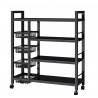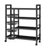 نقدم لكم عربة التخزين متعددة المستويات، الحل المثالي لجميع احتياجاتكم التنظيمية. تم تصميم هذه العربة مع مراعاة كل من الوظائف والأناقة، حيث تتميز بإطار مستطيل قوي يعرض تصميم رفوف مفتوحة، يتكون من أربعة رفوف واسعة وقسم إضافي مع سلال عملية على جانب واحد.
