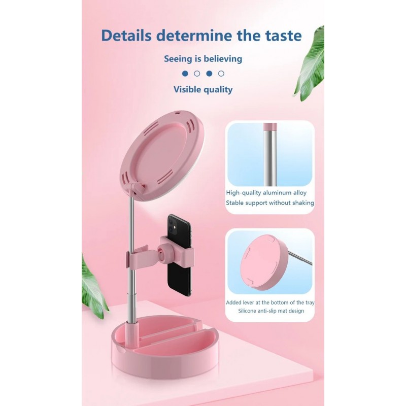 حلقة الإضاءة LED مع الحامل الثلاثي ليست فقط جمالية بفضل تشطيبها الأنيق، بل تتضمن أيضاً ميزات عملية مثل حجرة مدمجة لتخزين أدواتك أو ملحقاتك الأساسية. سواء كانت لجلسات تصوير احترافية أو مقاطع فيديو على وسائل التواصل الاجتماعي، فإن هذه الإضاءة الدائرية تعتبر خياراً ذكياً يلبي جميع توقعاتك.