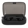 تتميز علبة الشحن المدمجة، بتصميم مستطيل مع حواف مدورة، بأنها ليست فقط جمالية بفضل تشطيبها الأسود اللامع، ولكنها أيضًا محمولة للغاية. يتيح لك الغطاء الشفاف رؤية سماعات الأذن الخاصة بك بينما يعرض معلومات أساسية على شاشة LED كبيرة.