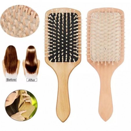 فرشاة شعر خشبية مضادة للكهرباء الساكنة - سهلة فك التشابك