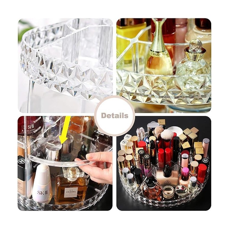 اكتشف منظم المكياج الدوار بزاوية 360 درجة القابل للتعديل متعدد الوظائف من الأكريليك، الحل المثالي للحفاظ على منتجات التجميل الخاصة بك منظمة بشكل مثالي. مصنوع من الأكريليك المتين، هذا المنظم ليس فقط خفيف الوزن ولكن أيضًا مقاوم، مما يضمن استخدامًا طويل الأمد. تصميمه الشفاف يتيح رؤية مثالية لمستحضرات التجميل الخاصة بك، مما يسهل الوصول إليها.