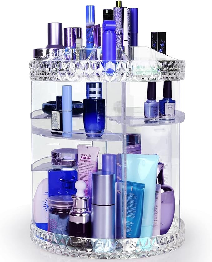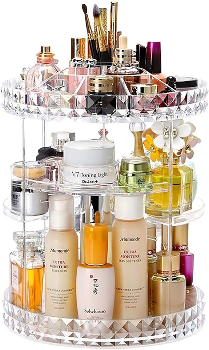 مع قدرته على الدوران بزاوية 360 درجة، يوفر لك هذا المنظم وصولًا سهلاً إلى جميع منتجاتك دون الحاجة إلى نقله. تخيل أن تتمكن من الوصول بسرعة إلى كريم الأساس أو أحمر الشفاه المفضل لديك ببساطة من خلال تدوير المنظم! بالإضافة إلى ذلك، فإن الارتفاعات المختلفة للرفوف تسمح باستيعاب زجاجات وعلب متنوعة، مما يجعل هذا الملحق متعدد الاستخدامات للغاية.
