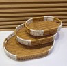 عزز ديكور منزلك مع مجموعتنا الرائعة من الصواني المنسوجة على شكل بيضاوي. يجمع هذا الثلاثي من الصواني بين الوظائف والأناقة، مما يجعلها إضافة مثالية لأي مساحة معيشة. مصنوعة من مواد طبيعية، تتميز هذه الصواني بلون بني ذهبي دافئ ينبعث منه سحر عضوي.
