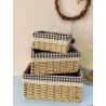 مصنوعة من ألياف طبيعية متينة مثل الخيزران، تتمتع هذه السلال بجمالية ريفية تكمل أنماط الديكور المختلفة. تضيف بطانة القماش المخطط بالأبيض والأسود لمسة ناعمة وتحمي متعلقاتك بينما تعزز التصميم العام. هذه البطانة المصنوعة من القطن أو مزيج القطن لا تبدو رائعة فحسب، بل توفر أيضًا شعورًا مريحًا.