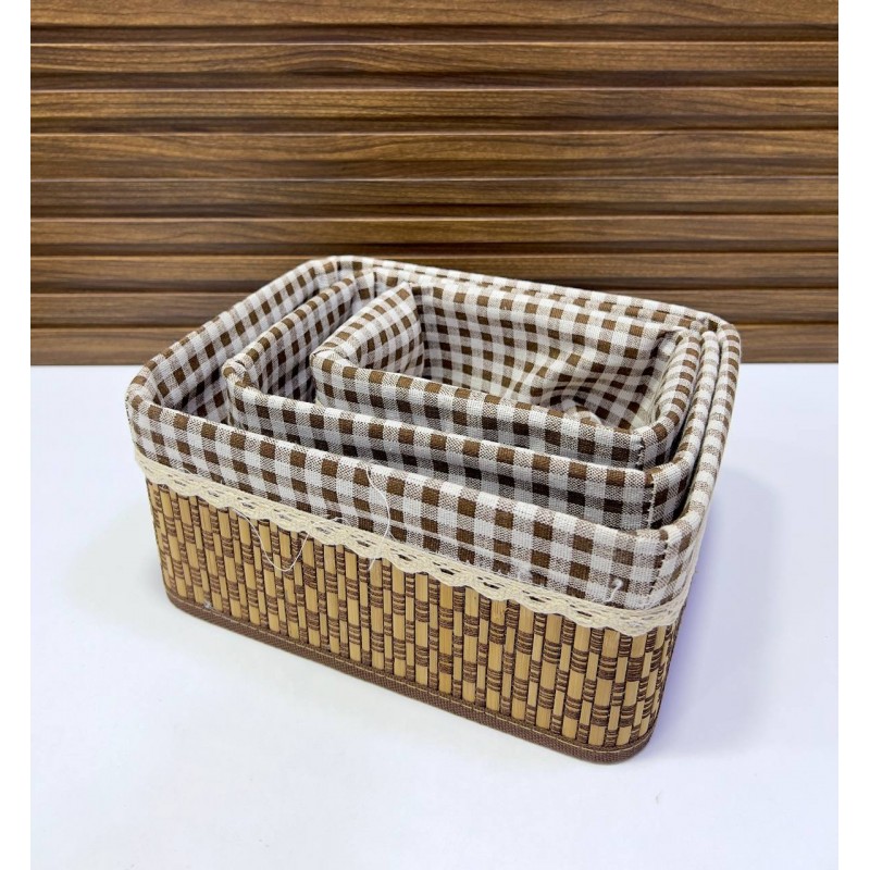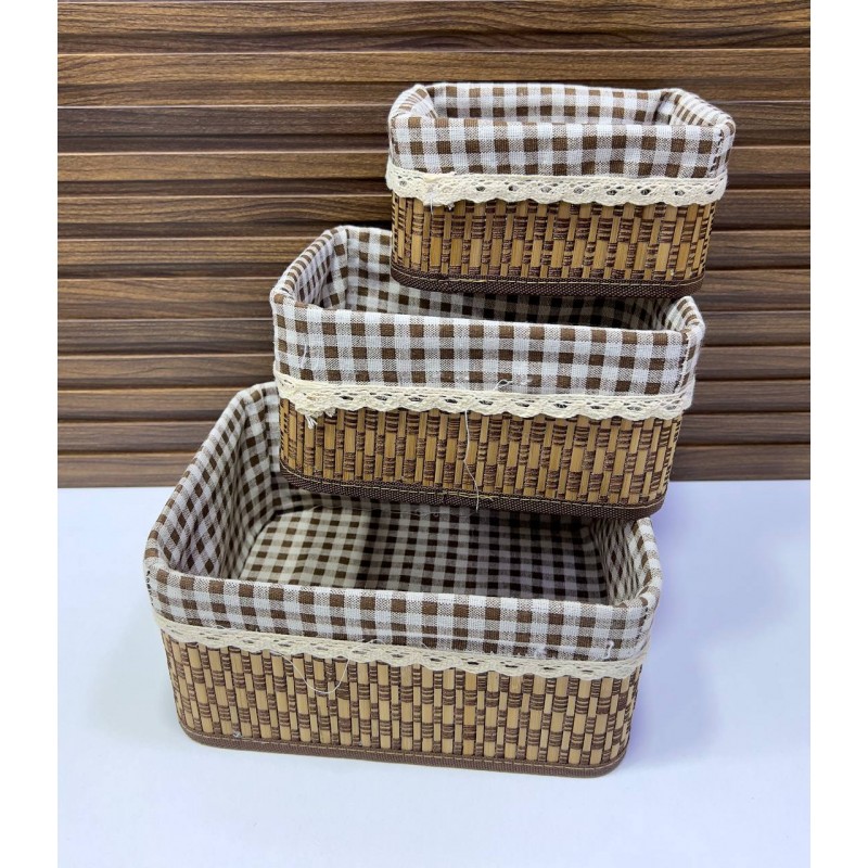 يسمح الشكل المستطيل لكل سلة بالتكديس بكفاءة، مما يجعلها مثالية لتوفير المساحة في غرفة المعيشة أو غرفة الأطفال أو المكتب المنزلي. تتميز أكبر سلة بقاعدة عريضة لتلبية احتياجات التخزين الكبيرة، بينما تعتبر الأصغر مثالية للحفاظ على الأشياء الصغيرة مرتبة بعيدًا.