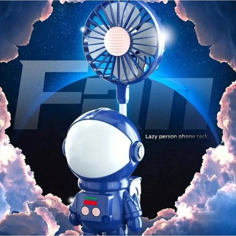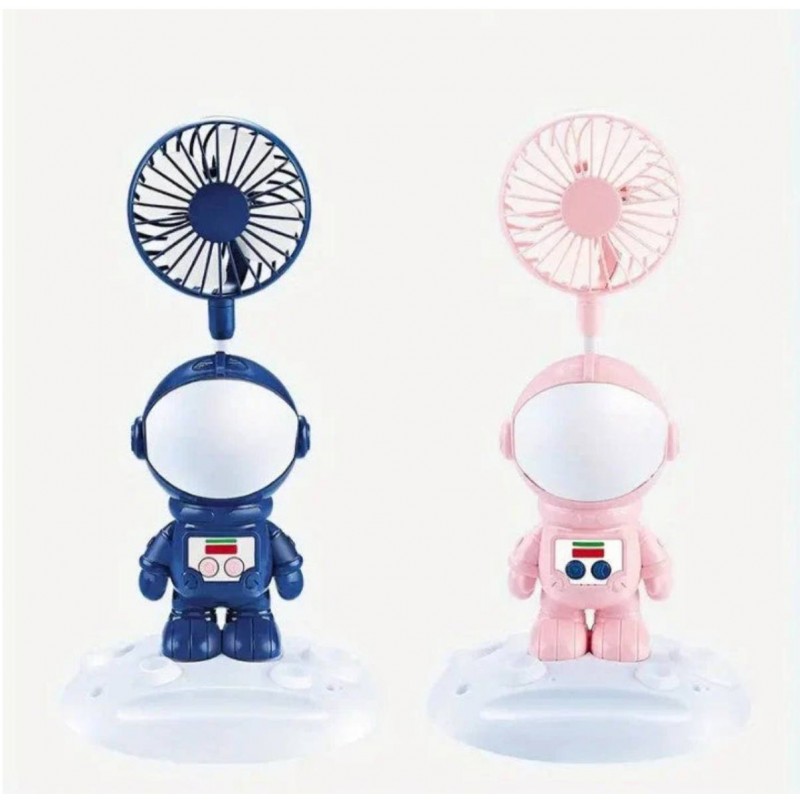 تتميز المروحة بشخصية رائد فضاء ساحرة تقف على قاعدة دائرية ناعمة. مع لونها الأزرق الزاهي المزود بتفاصيل بيضاء وحمراء وخضراء، تضيف عنصرًا من المرح إلى أي غرفة. يُظهر خوذة رائد الفضاء تصميمًا انسيابيًا دائريًا مع سطح أبيض فارغ يضيف إلى جاذبيتها المستقبلية.