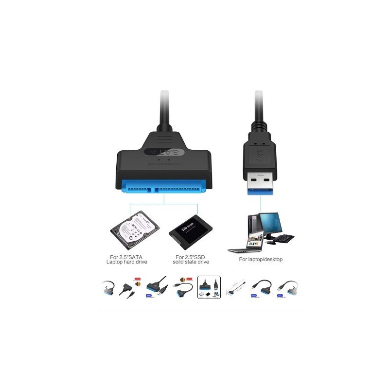 تحتوي الحزمة على كابل Sata - USB لمحرك الأقراص الصلبة SSD مقاس 2.5 بوصة، وهو مثالي للنسخ الاحتياطي للملفات أو ترقية القرص الصلب لجهاز الكمبيوتر الخاص بك.