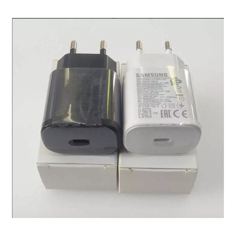 Discover the Samsung Note 10 25 W Fast Charger with EU adapter, ideal for ultra-fast charging of your devices. With a USB Type-C port and a compact design, this charger ensures optimal power up to 25W. Available in black and white, it combines performance and modern aesthetics to meet all your charging needs.