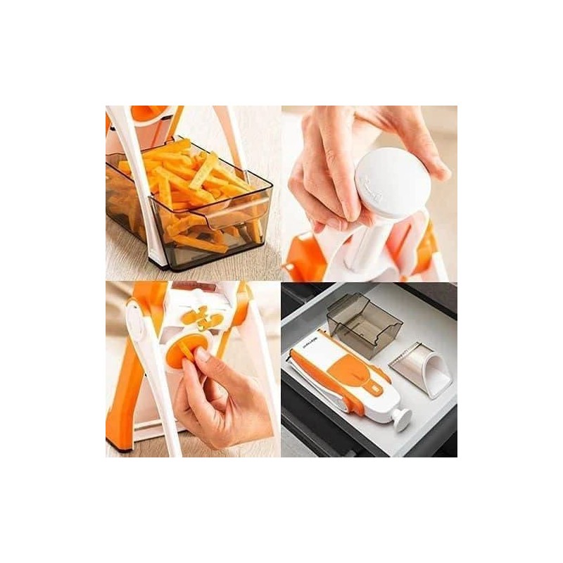 Safe and versatile, the multifunctional vegetable and fruit press is perfect for both amateur and professional cooks. Don't let food preparation become a chore, simplify your life with this essential tool that will make every meal even more delicious! Invest in your kitchen today with this innovative slicer.