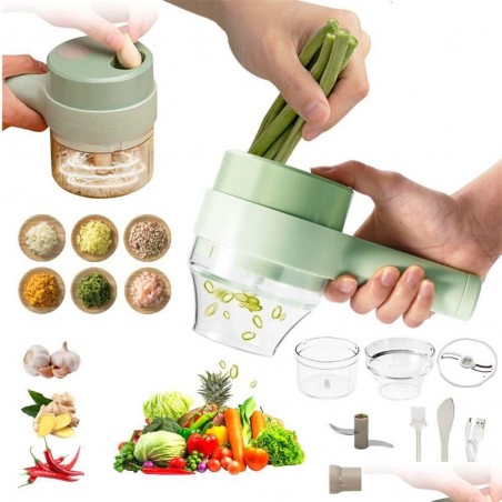 Discover the 4-in-1 Portable Electric Vegetable Slicer, an essential tool to simplify your cooking preparation. With its interchangeable blades, this device allows you to slice, chop, and cut vegetables quickly and mess-free. Its ergonomic design and durable material ensure easy and safe use. Transform your meals with this versatile tool today!