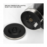 In terms of design, this kettle stands out with its blue lighting that illuminates during heating, adding a modern touch to your kitchen. The 360° rotating base and the wide opening of the lid make it easy to use daily. A removable filter and a water level indicator complete its practical features.