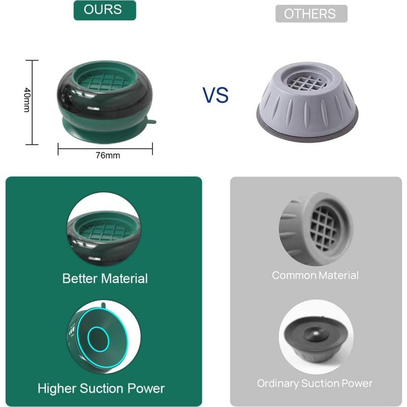 Shape and Design: Each pad features a rounded, spherical design with a smooth outer surface and a flat base. The grid pattern on the top surface enhances stability, ensuring that your washing machine remains securely in place during operation.