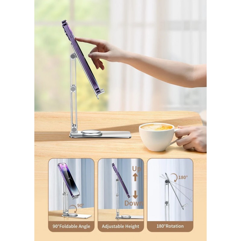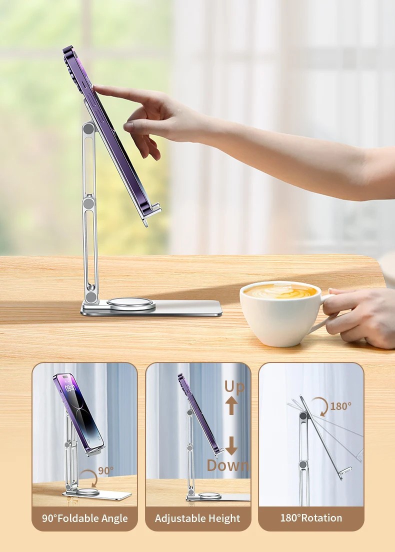 In summary, the Adjustable Metal Desktop Rotating Phone Stand combines functionality with modern style. Whether you're at work or at home, this versatile accessory will perfectly meet all your digital needs while enhancing your daily comfort.