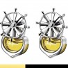 The vibrant red hue of the bottle symbolizes passion and allure, making it an ideal choice for anyone looking to make a bold statement. Crafted from high-quality glass or plastic, it boasts a polished finish that reflects light beautifully. The standout feature is undoubtedly the cap, designed to resemble a ship's steering wheel, adding an element of playfulness and charm that sets it apart from typical fragrance bottles.