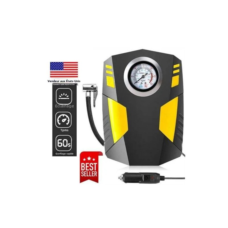 Discover the ultimate portable air compressor, designed for effortless tire inflation. Its compact, sleek design ensures easy storage in your vehicle. Featuring a mechanical pressure gauge and a digital display, this reliable tool is perfect for cars, bicycles, and sports equipment. Stay prepared for emergencies with this essential automotive accessory that combines functionality and portability.