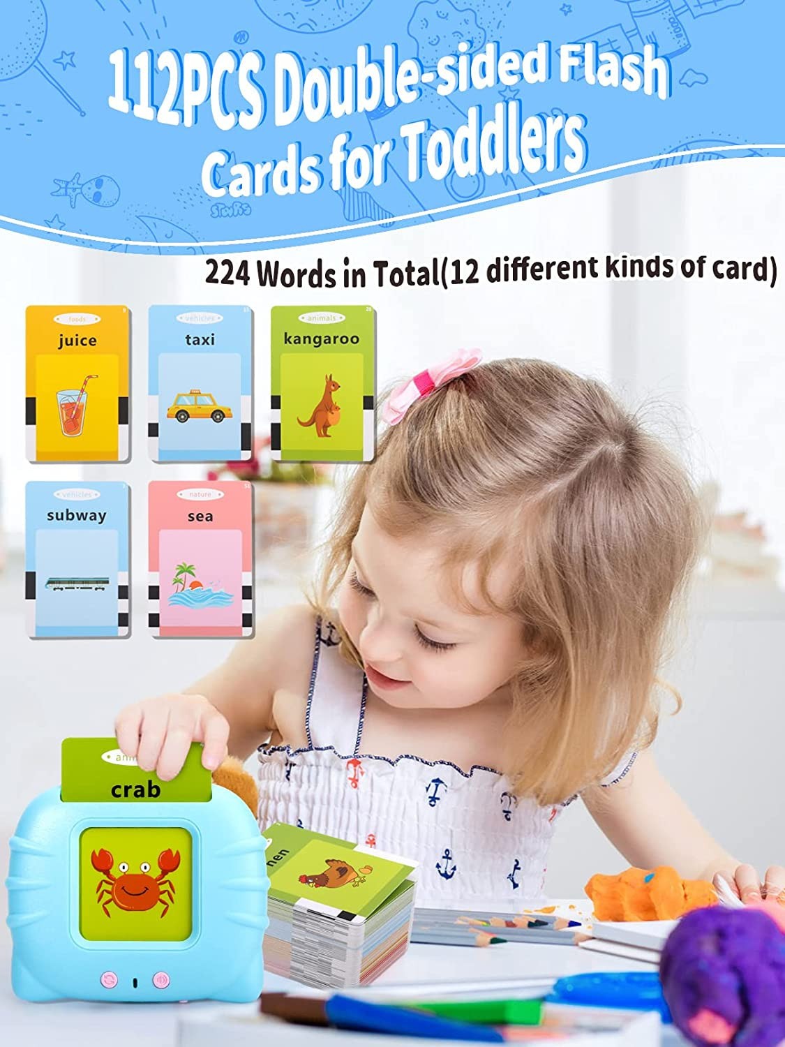 Discover the Talking Flash Cards Learning Toys, an innovative educational tool designed by LIONVISON, perfect for young children, including those with autism. With a total of 224 words, these interactive cards stimulate learning while making the process fun and engaging.