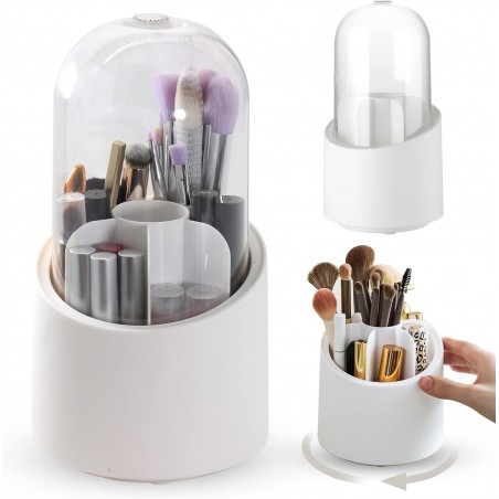 Discover the Makeup Brush Holder with Lid, a dustproof rotating organizer, an essential accessory for beauty enthusiasts. With its sleek design and spacious capacity, it keeps your brushes and cosmetics well organized. The transparent lid protects against dust, while the 360-degree rotating base makes it easy to access all your favorite products.