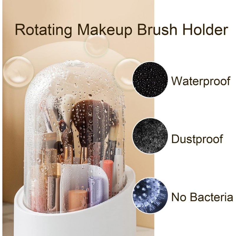 Makeup Brushes Holder with Lid Dustproof Rotating Organizer