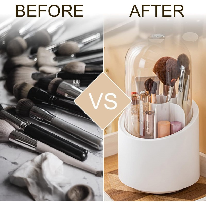 Don't wait any longer to enhance your beauty routine! The Makeup Brush Holder with Lid, Dustproof Rotating Organizer is a must-have that combines elegance and efficiency in your beauty space.