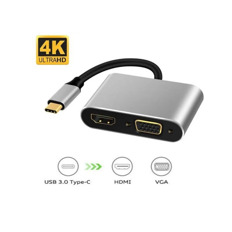 With its sleek silver aluminum design and sturdy connectors, this adapter not only functions efficiently but also integrates perfectly into your current tech setup. Choose the USB Type-C to HDMI 4K VGA USB 3.0 Converter Adapter to simplify your connections while enjoying optimal performance.
