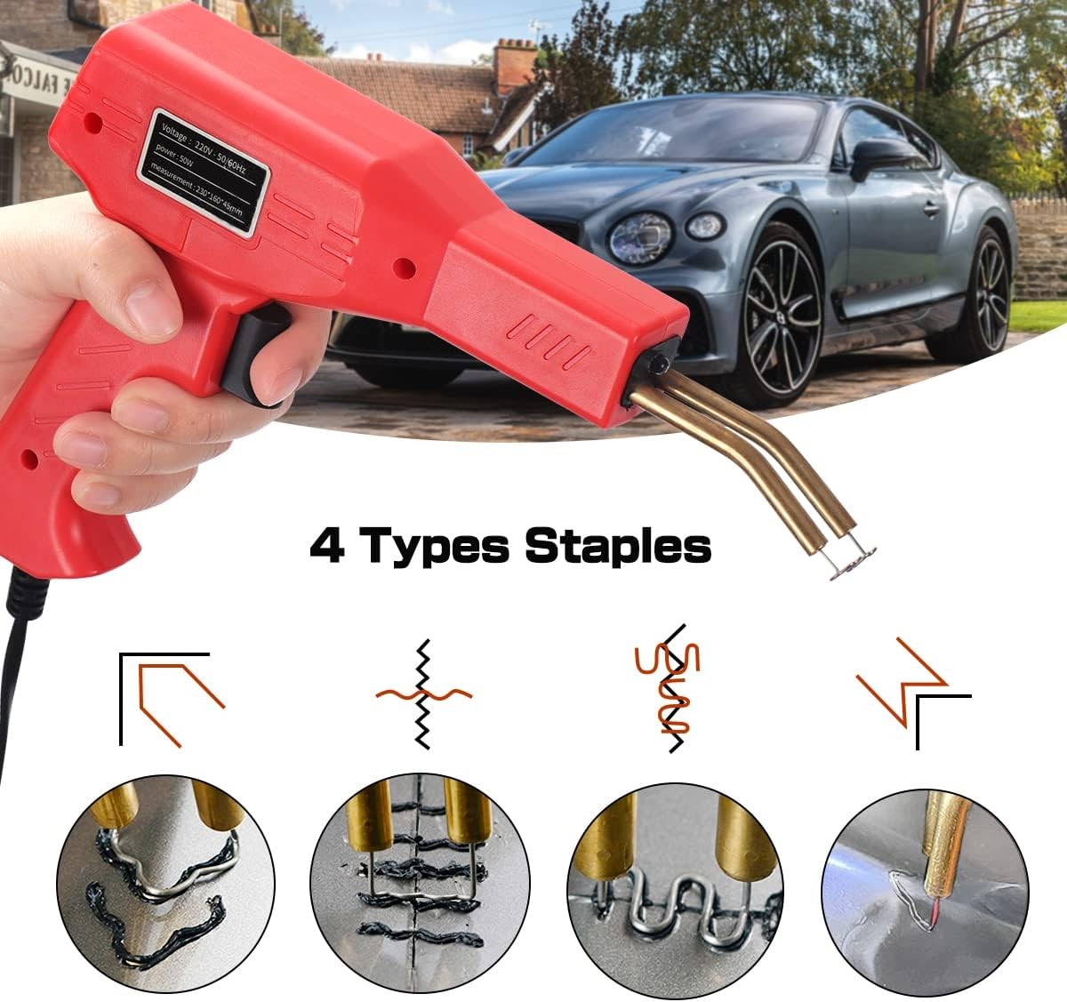 Included in the kit are four types of staples tailored to meet diverse repair needs: V-shaped staples for interior corners and M-shaped staples for exterior edges. These specialized attachments enhance the tool's functionality by addressing various repair scenarios efficiently.
