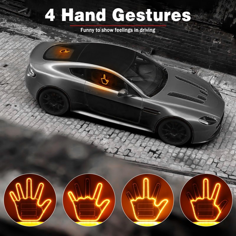 Each gesture is crafted from durable materials integrated into the windows or body of your vehicle, ensuring they are weather-resistant and long-lasting. These illuminated hand gestures serve multiple purposes: they can communicate emotions or messages to other drivers while enhancing visibility during nighttime drives.
