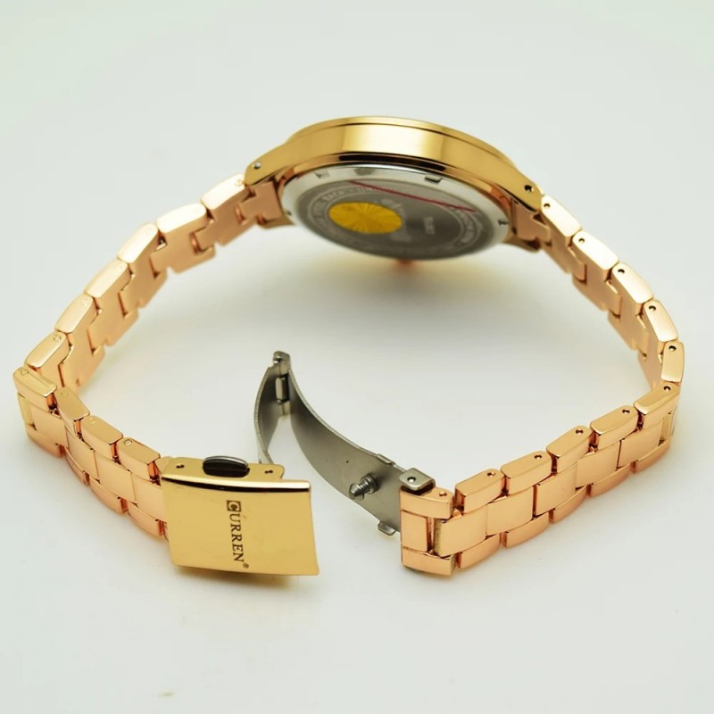 Discover timeless elegance with the luxury women's watch, combining sophistication and functionality. Featuring a gold stainless steel case and a black leather strap, this watch offers precise quartz movement and water resistance up to 50 meters. A perfect accessory to elevate your style for everyday wear or special occasions.